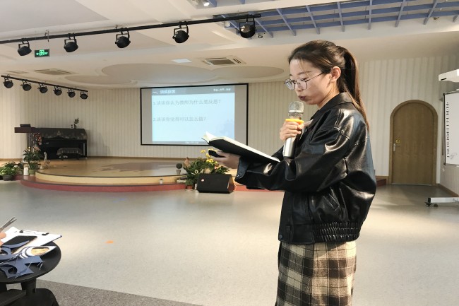 第二环节,来自九龙湖幼儿园中六班的魏馨老师,根据她的理解和反思,分享了教师可以怎样引到孩子间的相信与质疑,可以用哪些策略进行。大家听得津津有味,时不时还有眼神与语言的交流。同样来自九龙湖幼儿园中一班的徐梁老师,根据自己的亲身经历,分享了在小组活动中,教师的定位,以及教师开展活动时的教学策略。